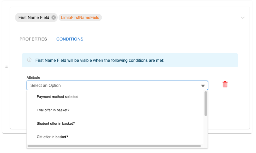With Conditional Subcomponents, you'll be able to configure exactly how you want your Form checkout to appear, depending on certain order conditions.