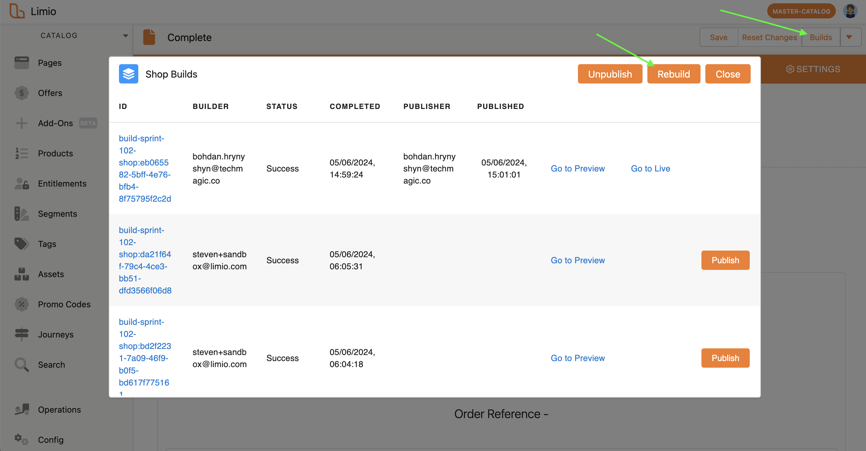 In order to reduce stress on the build process and prepare our page builder for future improvements, we've separated out the Save functionality and the page Build functionality. Now, the Save button will not automatically build your page. Instead, you'll need to click Builds and Rebuild to trigger the page Build. Mass build and publish still works the same as before.