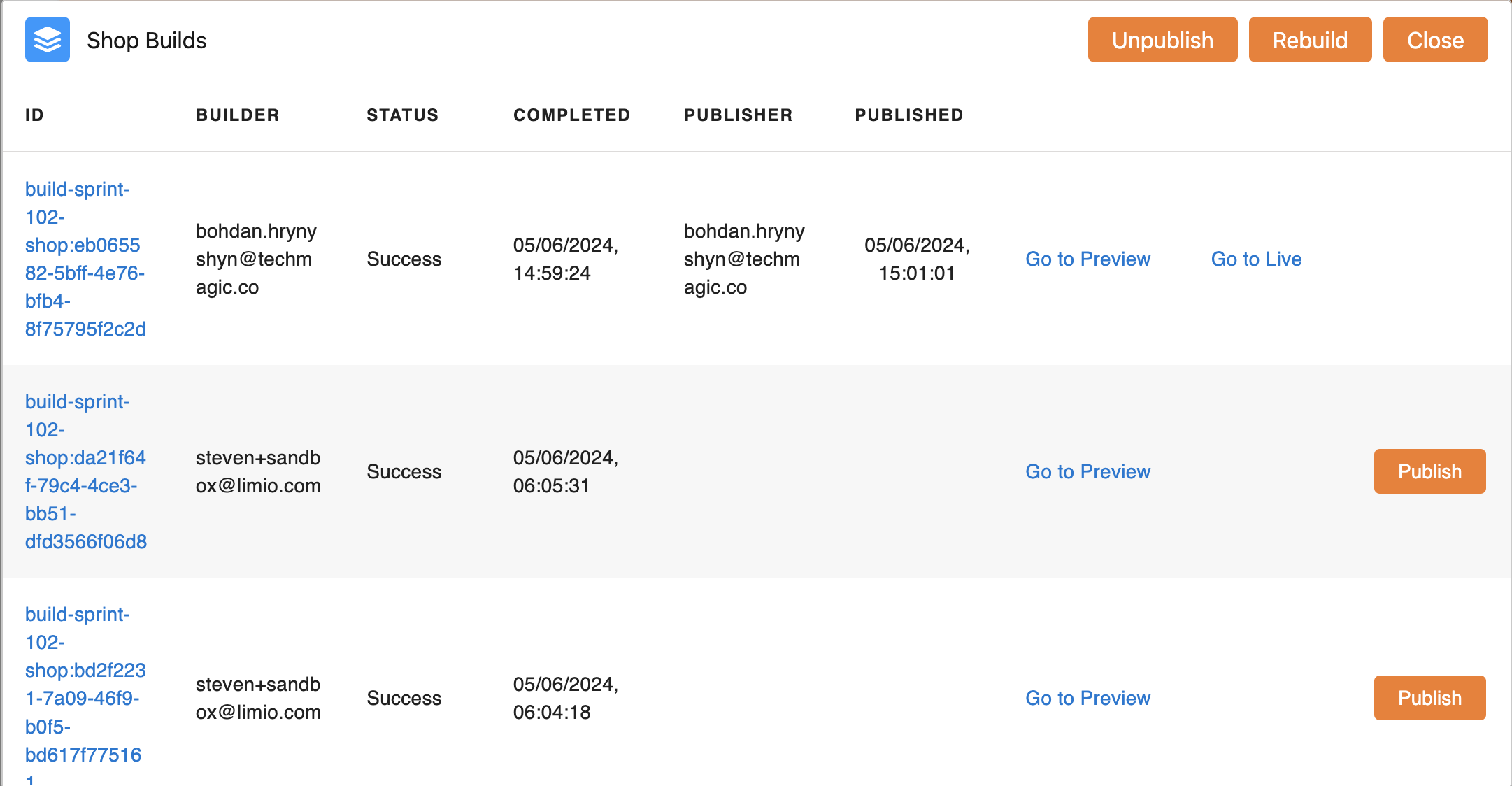 We've added a new column to display the username of the user who last built a page. This can help distinguish between building and publishing actions.