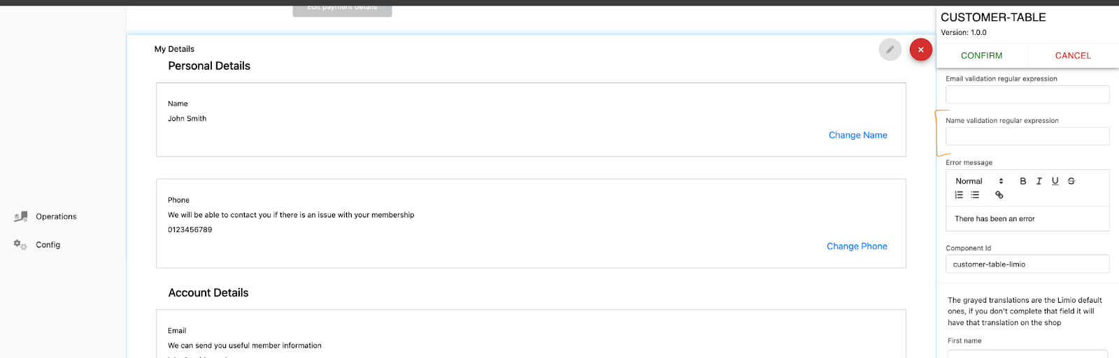 We have made a small adjustment to the Customer Table component to allow Limio Commerce users to define regex validation for the customer name field.